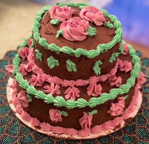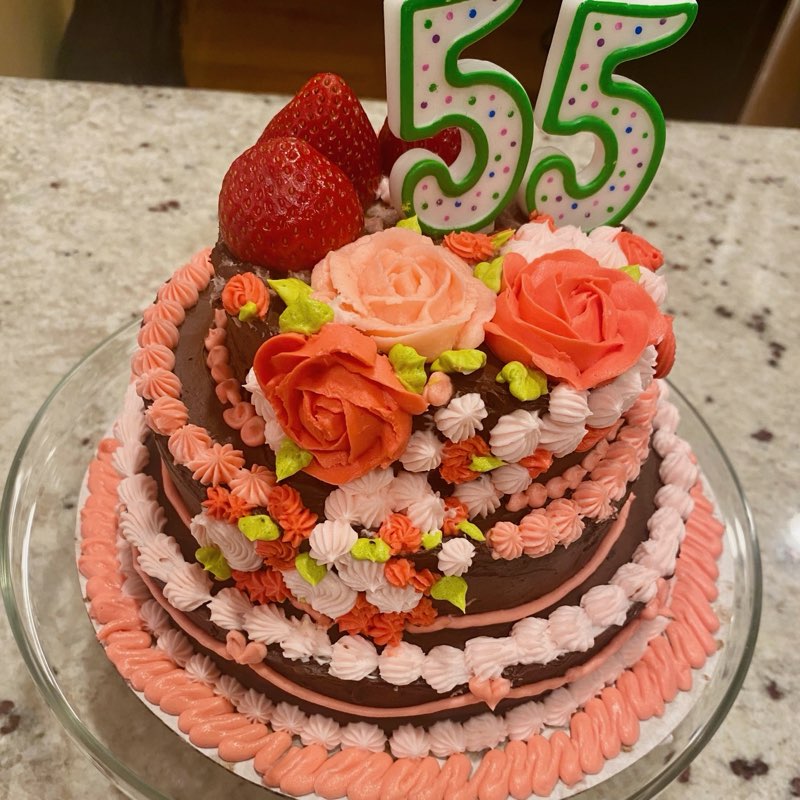 Alexis made an elegant birthday cake for me. Not only was it stunning to look at with beautiful flowers and swirls, but it was moist and delicious. She is a very creative and talented cake decorator.
